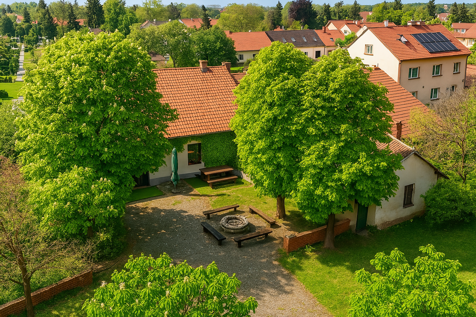 🟢 Velkou zahradu: Perfektní pro pořádání různých akcí, jako jsou svatby, garden party a další společenské události.