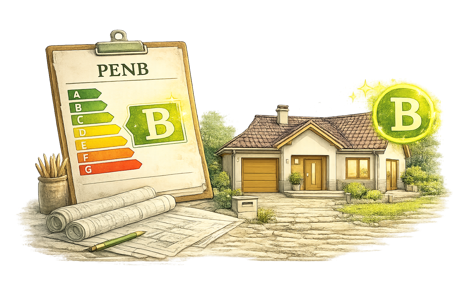 - Solární panely na střeše domu.