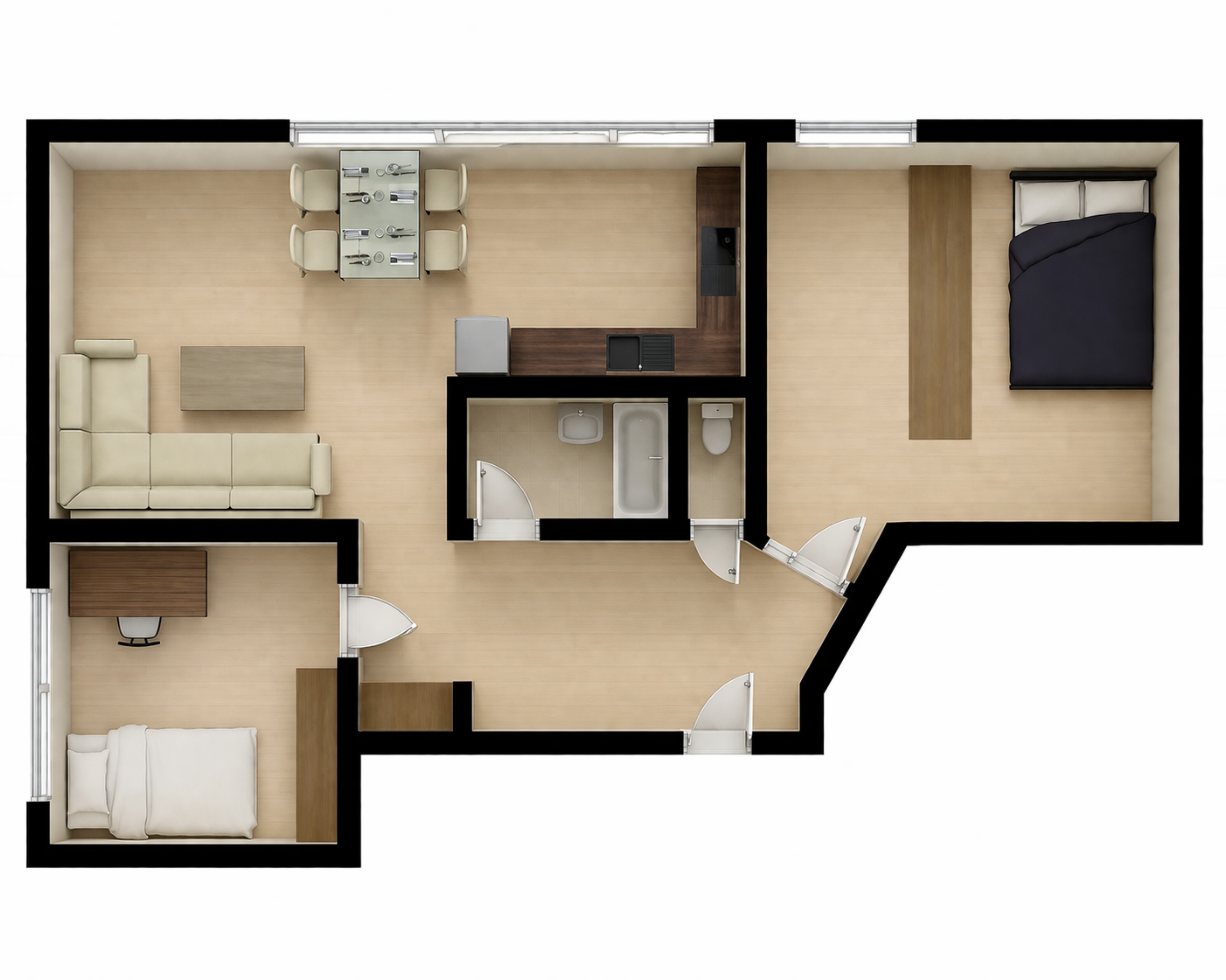 - Dvě samostatné ložnice zajišťující dostatek soukromí pro všechny členy domácnosti.
